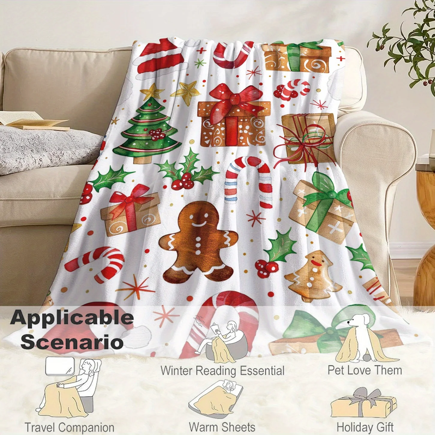 Christmas Themed Knitted Flannel Throw Blanket - 100% Polyester Soft and Comfortable Quilted Bedding, Sofa, Office, Gift