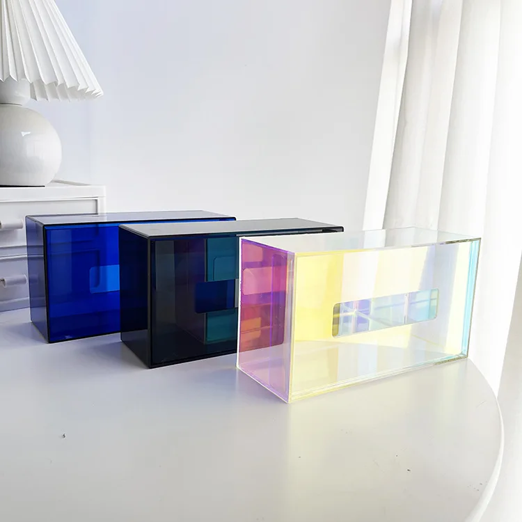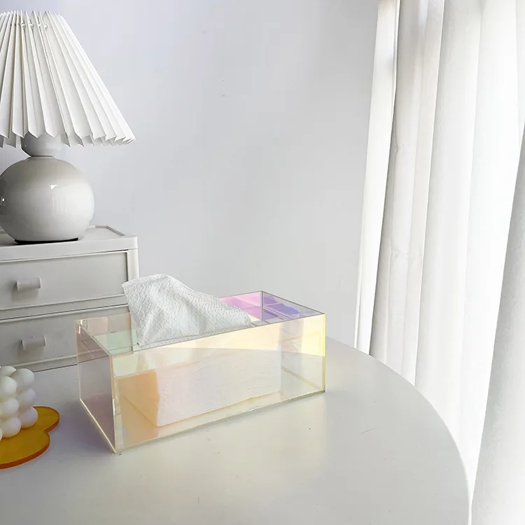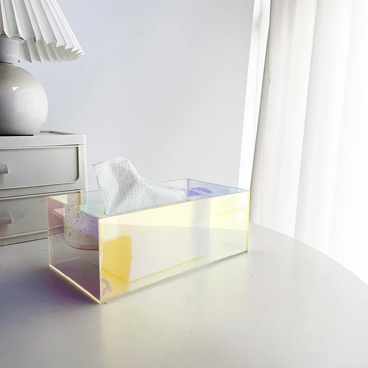 Iridescent Acrylic Tissue Box Holder Dispenser for Facial Tissue, Napkins, Dryer Sheet for Bathroom, Desks, Vanity, Bedroom