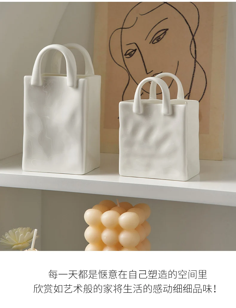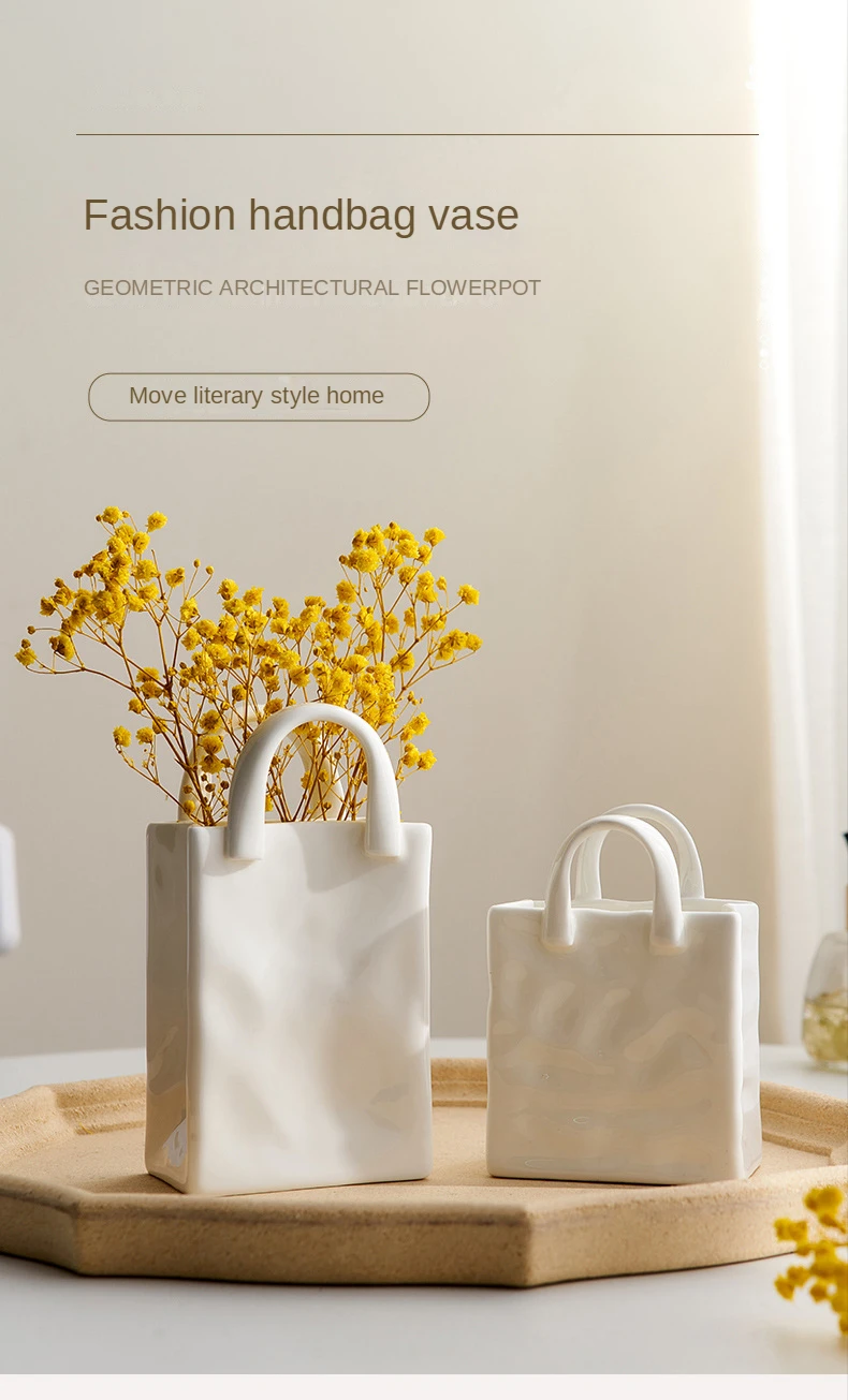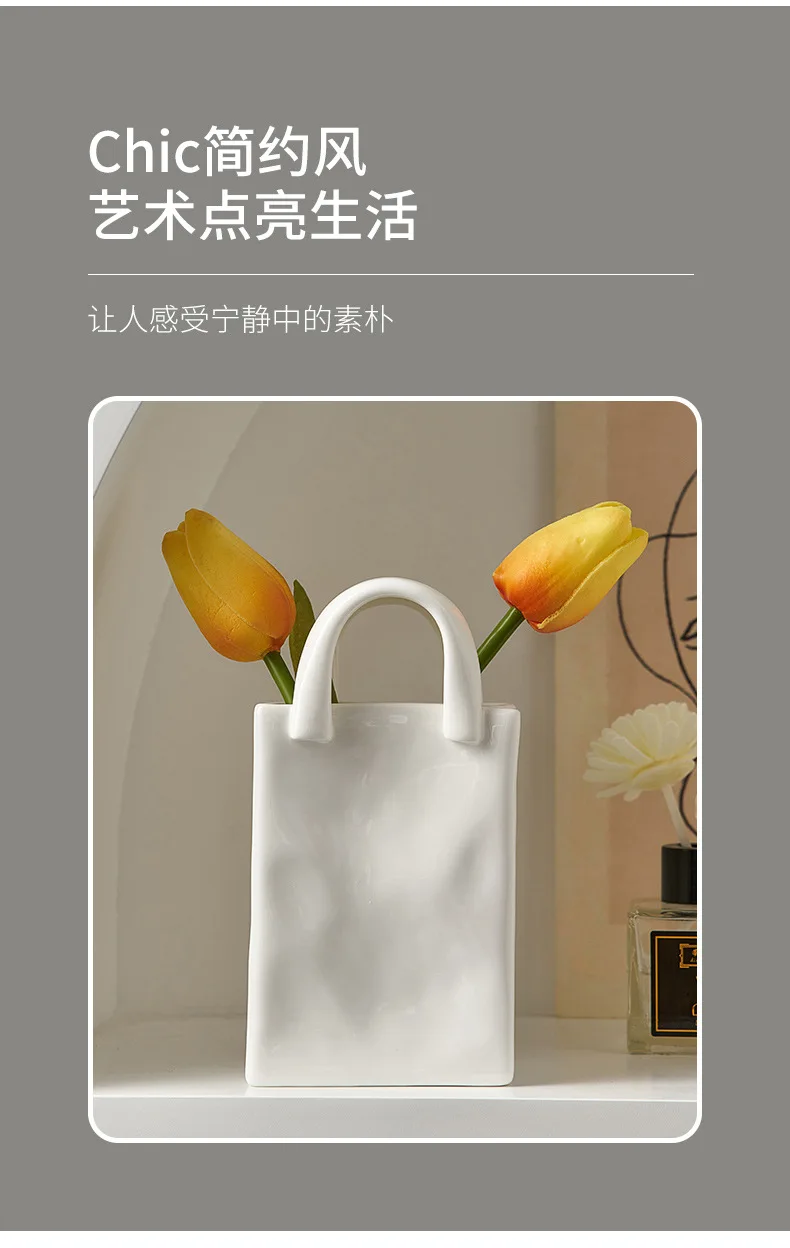 Nordic Handbag Shaped Ceramic Vase for Flowers Modern Decorative White Vase Home Decoration Dried Flower Arrangement Table Decor